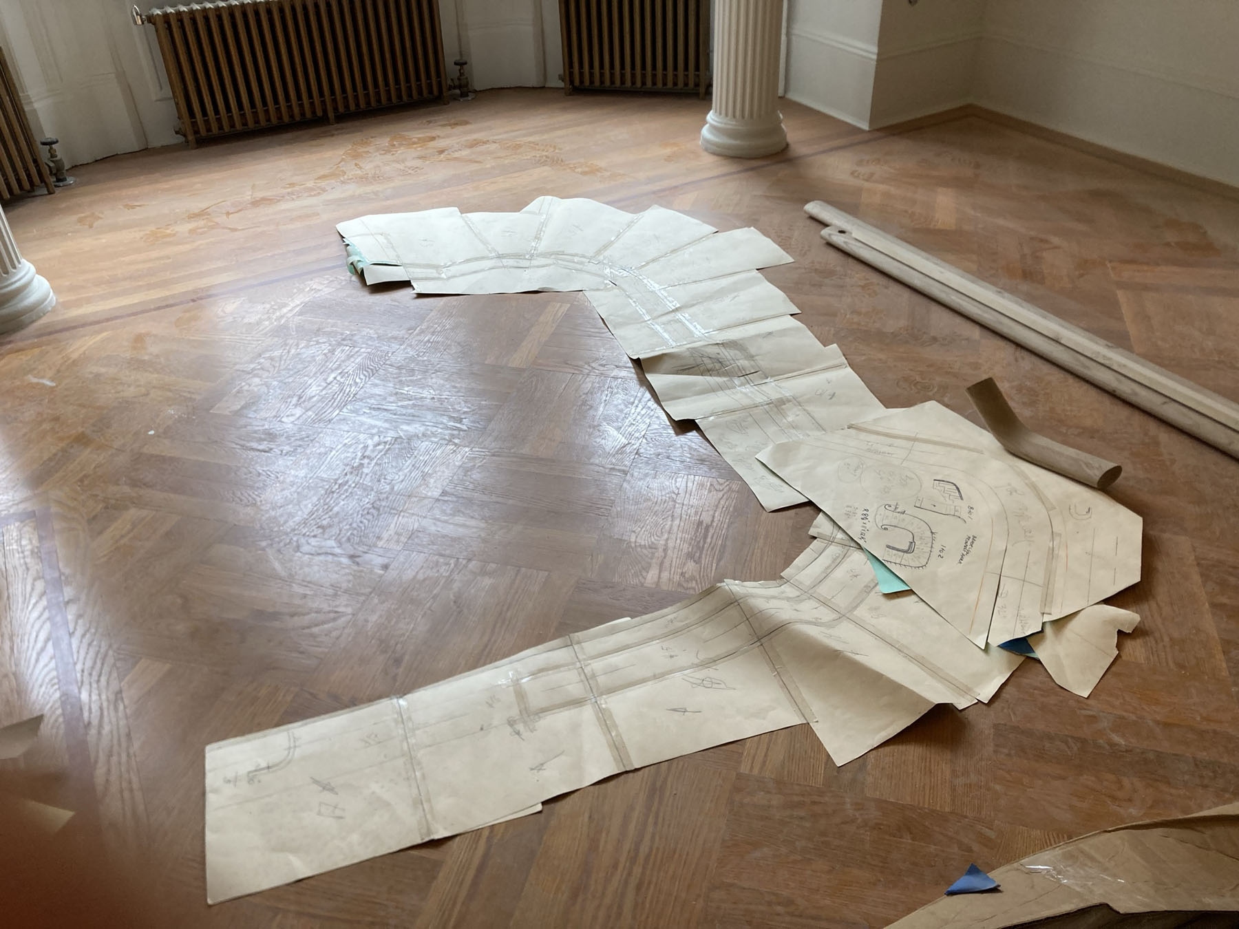 We were on site at our Park Slope Townhouse Combination and we happened to see the templating process for the historic stair. Templating is an important part of any construction process where the fabricator for a particular component of the project comes to the job site to verify existing conditions and take detailed measurements of the exact size of their respective piece of the project.