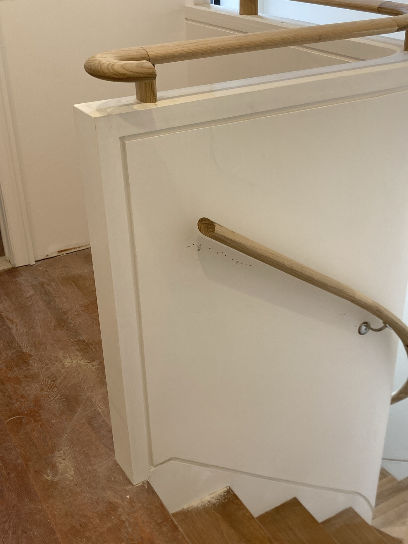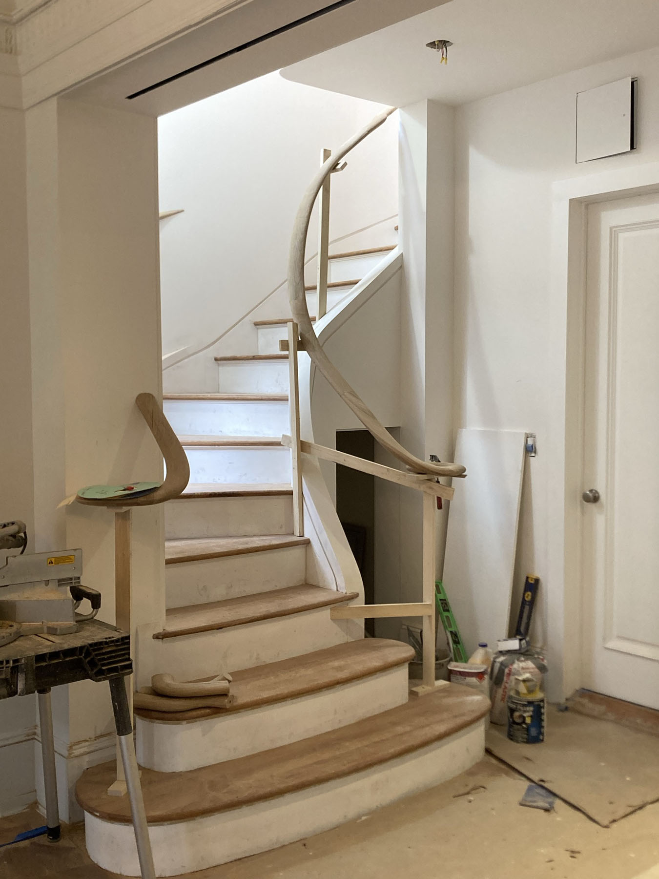In this case, the staircase handrail. As the architect we provide drawings for the staircase, but usually by the time the actual construction work is underway, dimensions have shifted slightly, and the realities of the job site often call for changes in the field.